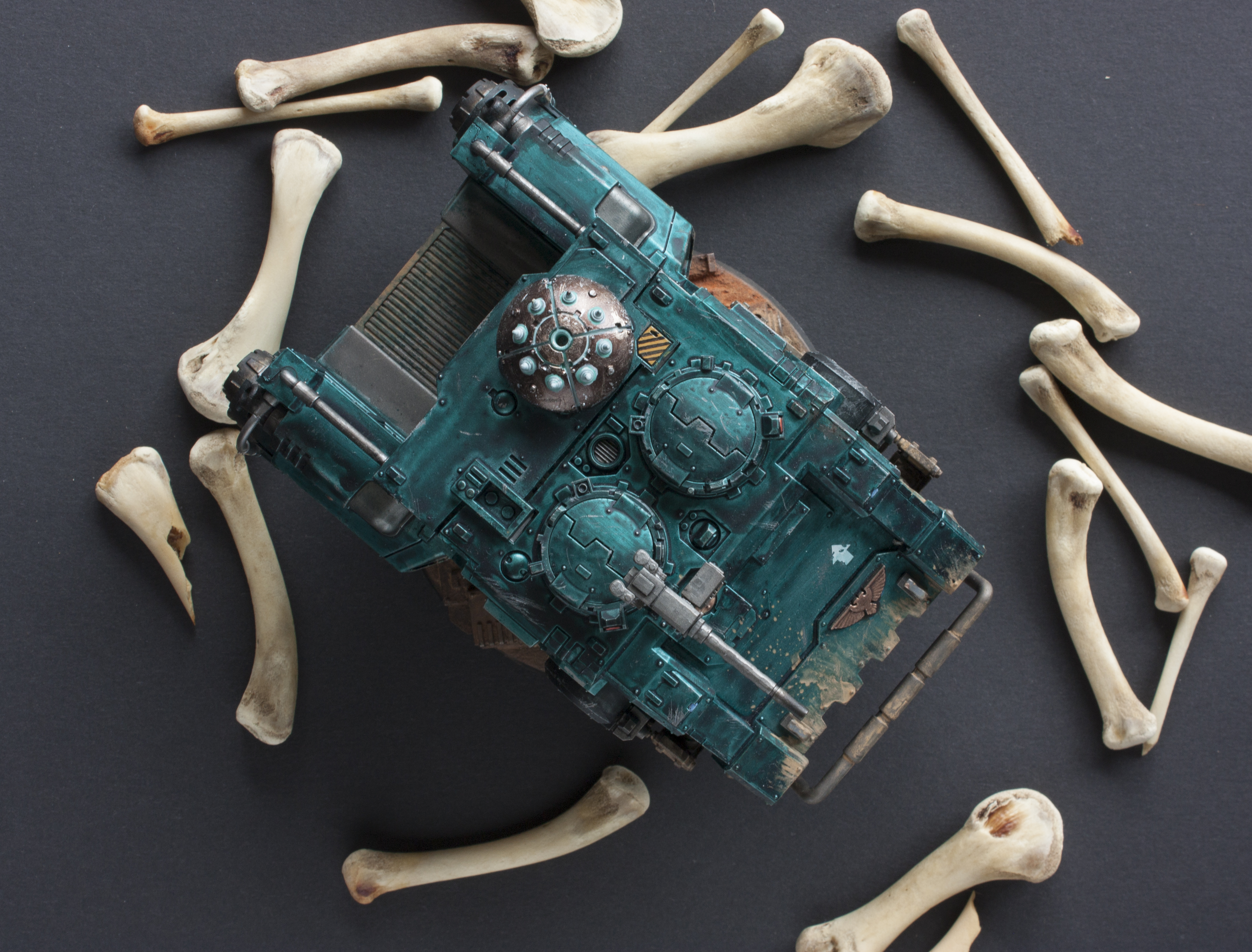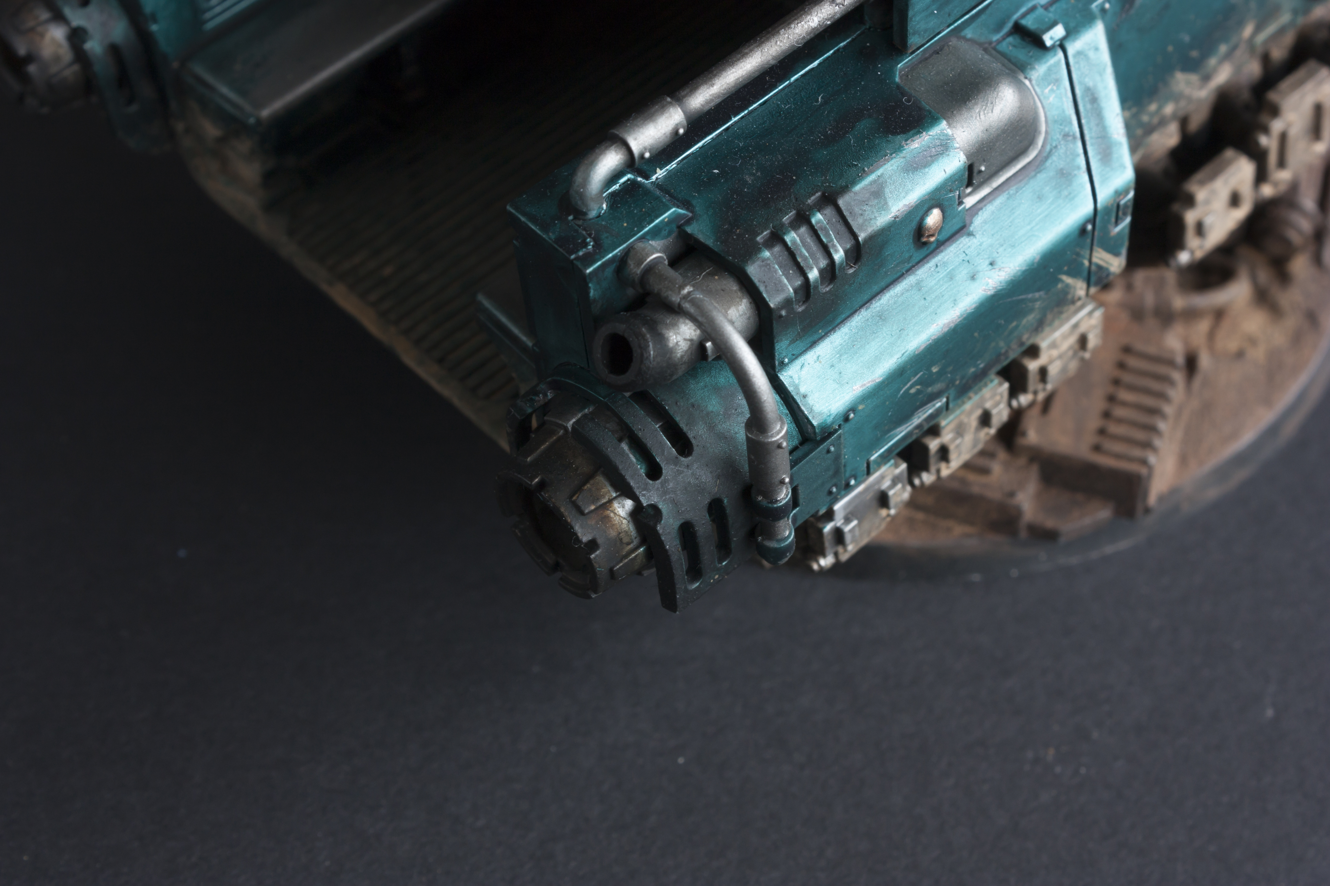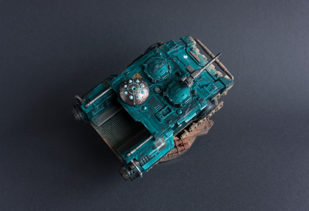 The Impulsor was my first tank from the Primaris range. I really enjoyed building it. The paintjob was a little tricky because I don’t own an airbrush. The contrast paint over metallic basecoat pooled here and there a little so the turquoise is darker in some spots. At first I was a bit unhappy with it but now I think it has some kind of weathered look to it and I’m happy with it.