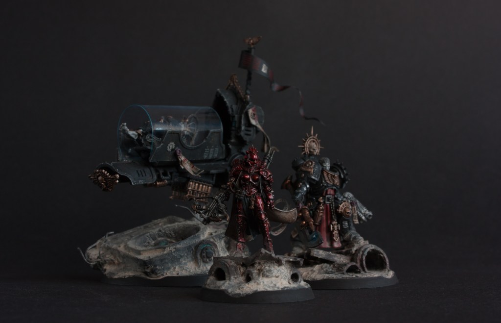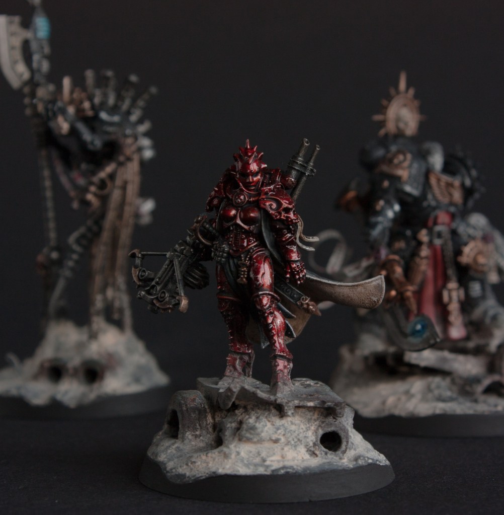 Crafting-wise I tried a few new things. It was the first time I used Tamiya Clear Red on a bigger scale i.e. on the Inquisitor’s armour and I’m pretty happy with the outcome. I especially like the contrast between the shiny armour and dull fabric and the matte base covered with pigments and rust.