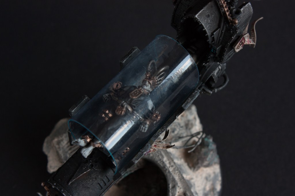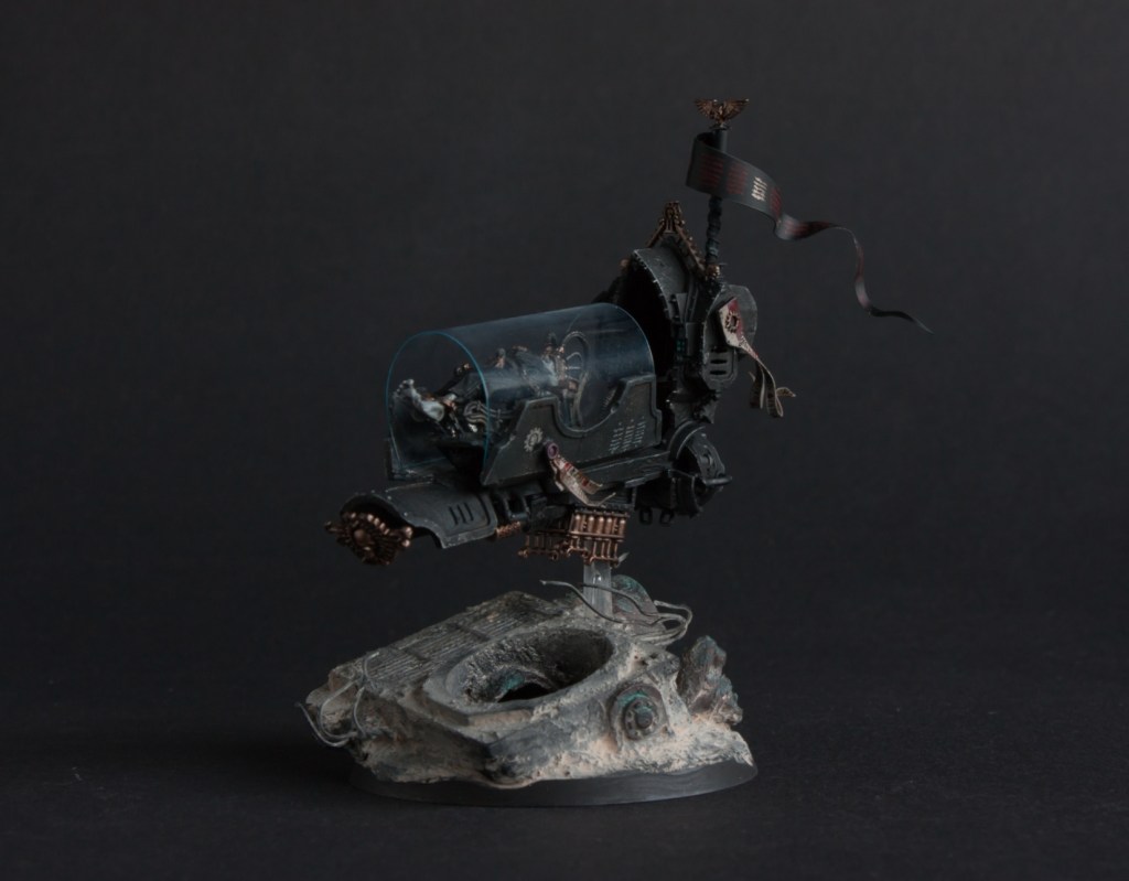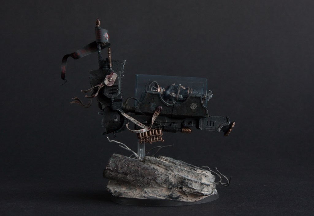 This miniature is completely scratchbuilt. I took inspiration from the awesome @FPOA. Also before I primed it, I used plastic glue to create a slightly corroded texture on the black armour plates of the ark. With every project I learn that texture underneath the paint is such an important thing.