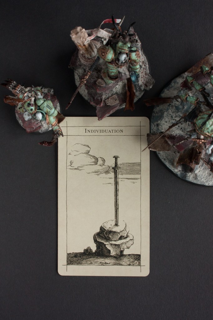 I really like to look at rotten Nurgle armies so I went for a pale green with lots of weathering, corosion and texture. It also fits the background story of the army which I will share in a seperate future post. It’s a pleasure to paint the miniatures and the weathering (which is probably my favourite part of painting) is pure joy.